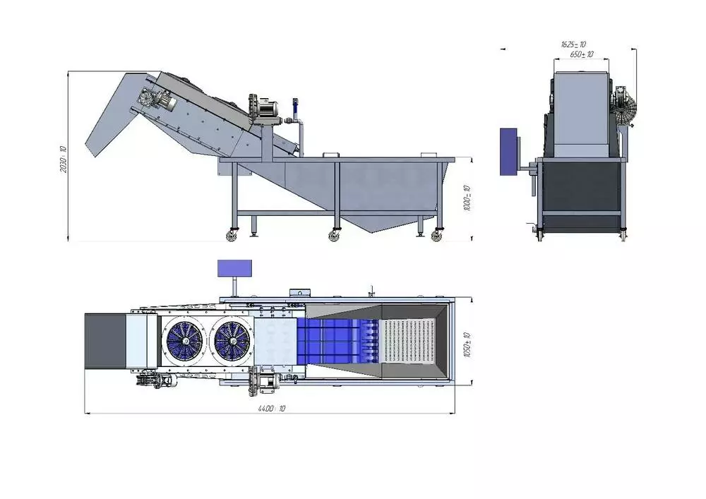 Барботажна мийка з вивантажувальним транспортером і обдування